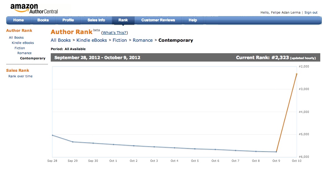 being at #2,323 in contemporary romance fiction is, well, not bad