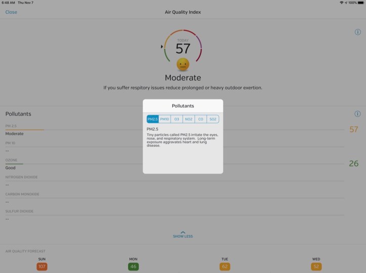 The occasional reading I saw like this one I saw this morning, though not good – and that’s for “moderate” lol! – is not frequent or long term; but is something for me to be aware of with my history of allergies, my age, etc.