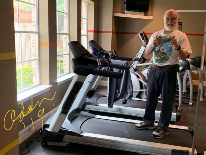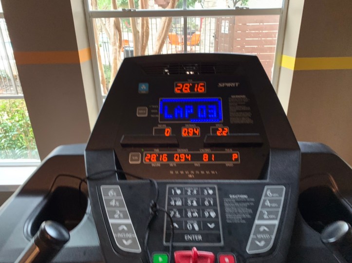 Though the morning air was mild cool compared to later in the day when the wind whipped up with gusts rain and much lower temps, I opted to use the complex’s fitness room treadmill. This allowed me to used my wireless earphones w/out fear of shorting them out in the rain outside. And yeah, it was more comfortable, lol!