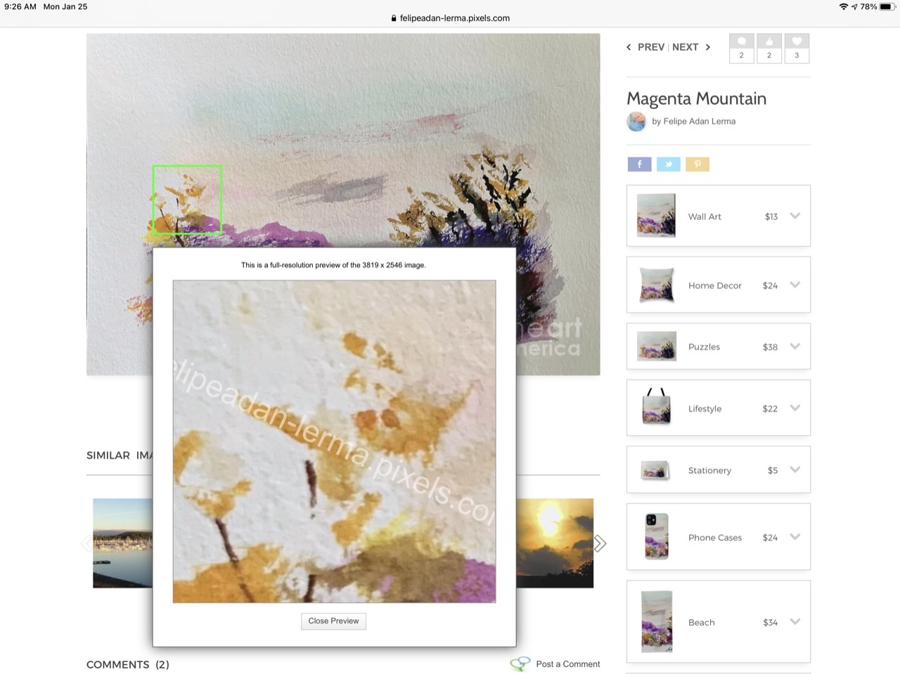 Viewing High Resolution snippets on Fine Art America