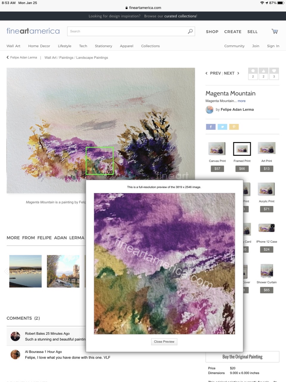 Re Fine Art America’s full resolution views