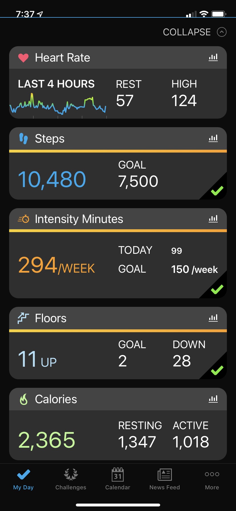 Here’s a screenshot of my fitness tracker app just a little later that evening. Lot of steps, stairs, and more telling, lots of intensity minutes for 3 days into the week. Pace, pace, pace 😂