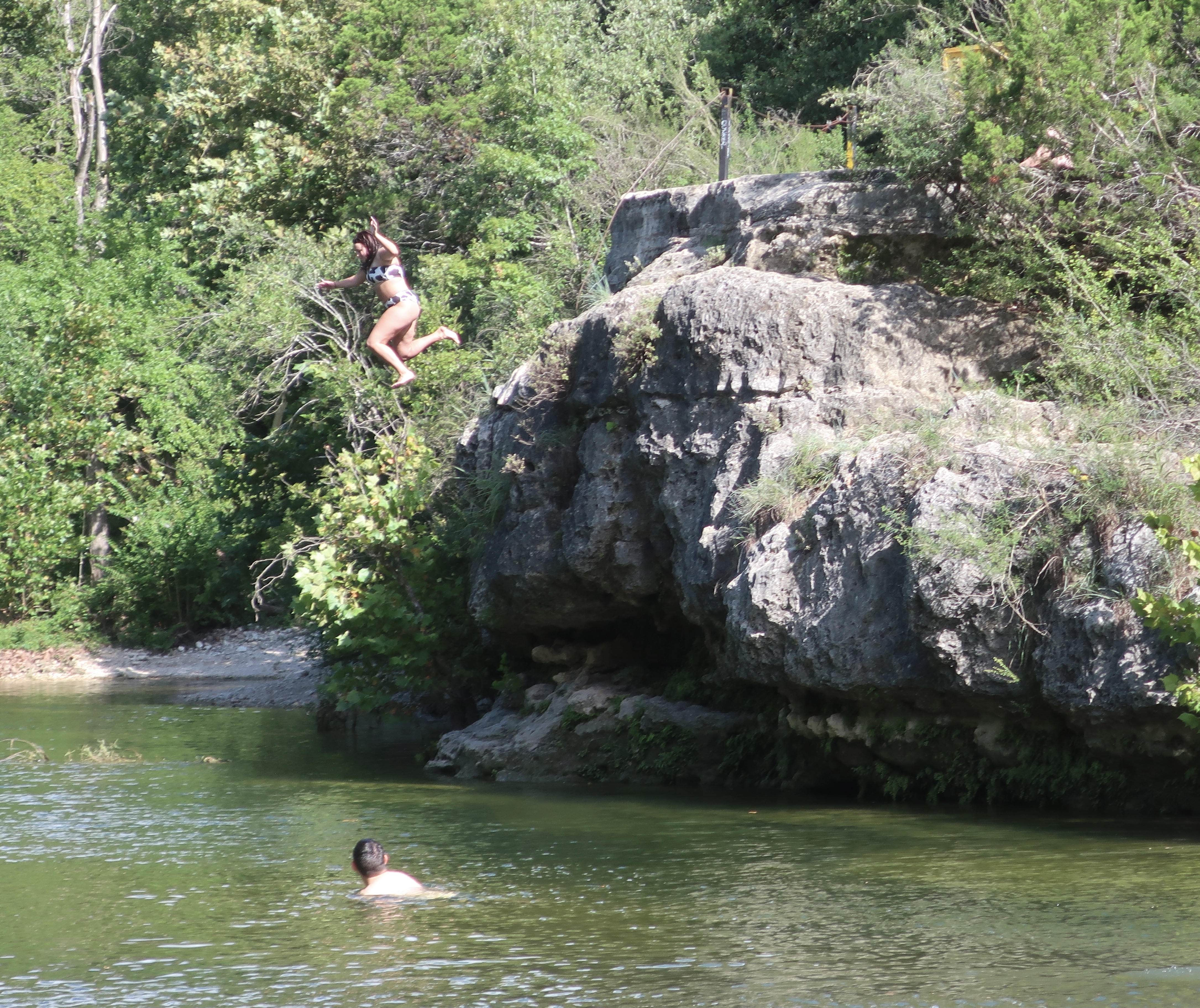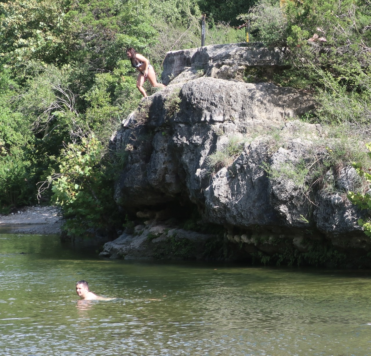 A bit back, as I posted the 2nd of June, after some unexpected but welcome heavy rains, water filled the usually fairly dry Barton Creek creek bed, and I discovered folks really like jumping off this rock into the water, lol!