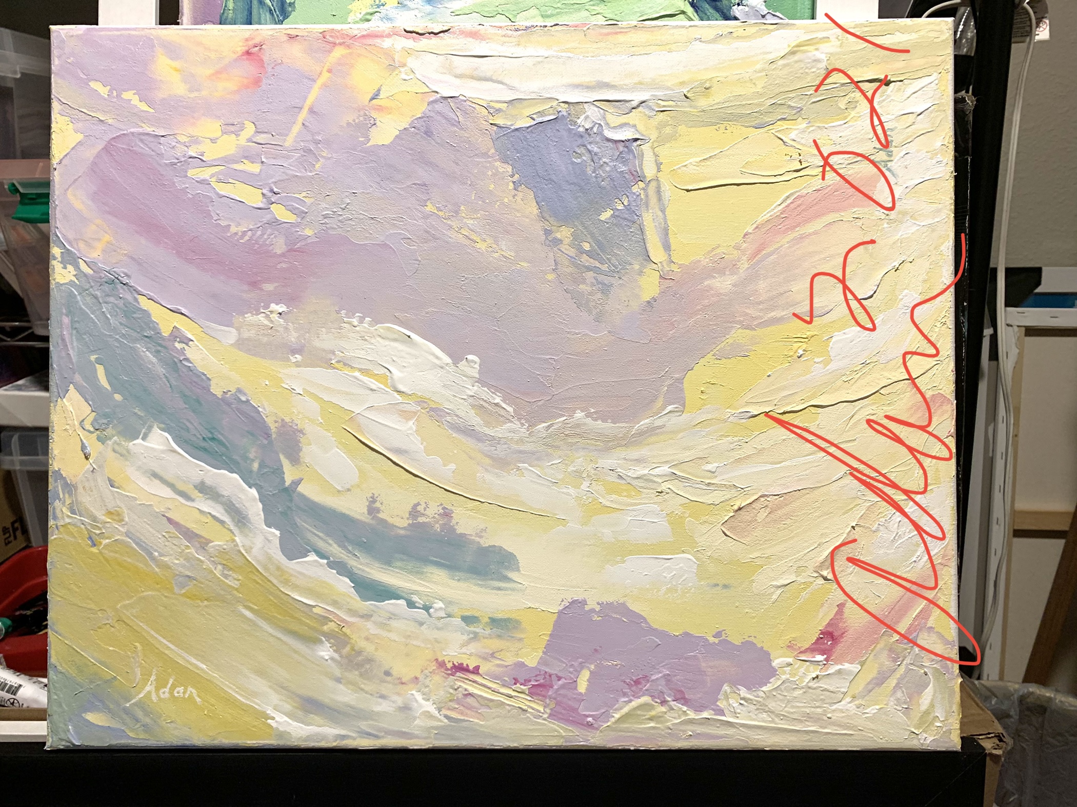 Meanwhile 😊 let’s take a better look at this newer much more recent acrylic by-accident-landscape, lol!